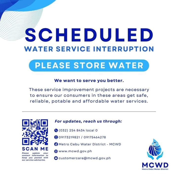 The Metro Cebu Water District (MCWD) has announced that Lapu-Lapu City is one of the affected areas due to maintenance