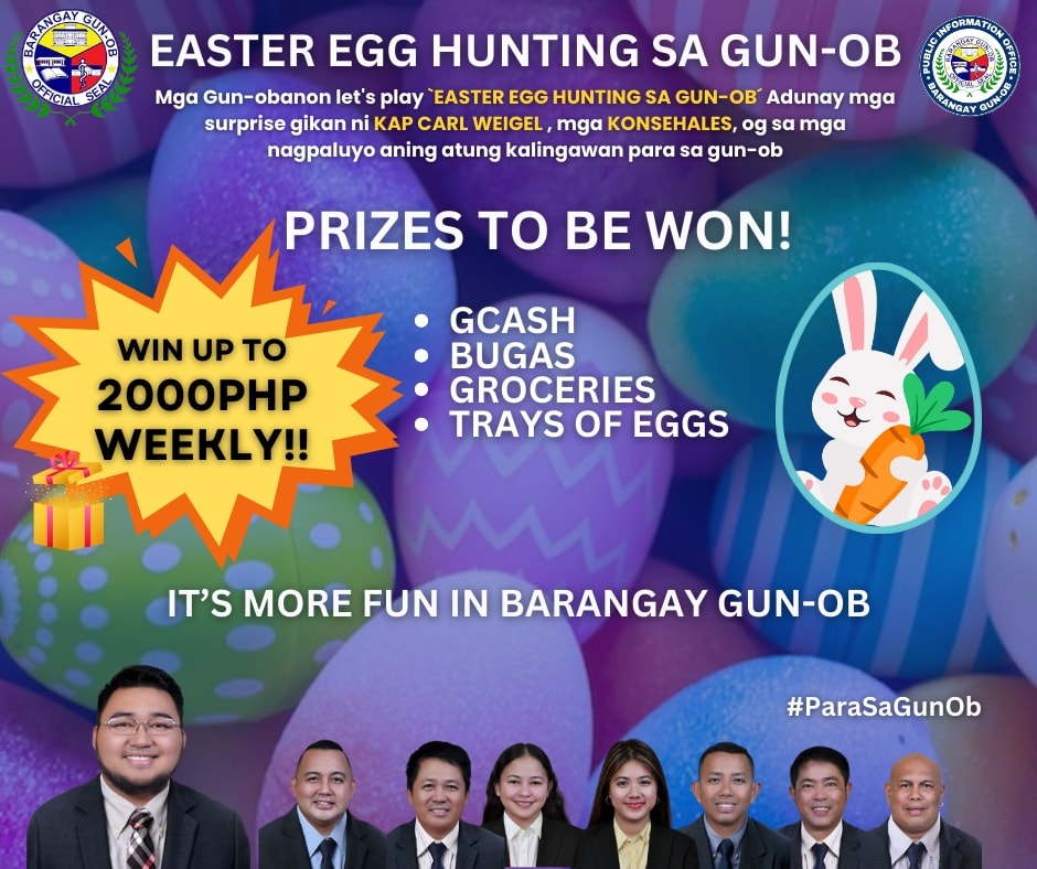 “EASTER EGG HUNTING SA GUN-OB”Mga Gun-obanon let’s play Easter Egg Hunting sa Gun-ob. Adunay mga surprise gikan ni Kap Carl,